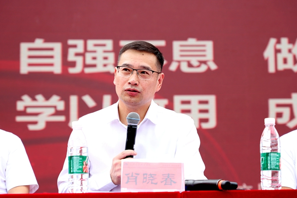 他结合学校“自强不息 学以致用”校训开篇。引用《周易》“天行健,君子以自强不息”,勉励同学们要自立自强,奋发向上,永不松懈,自觉勇担民族复兴使命;要深刻意识和践行“自强不息”的奋斗精神;要始终保持一颗拼搏之心,秉持永不服输的顽强毅力,积极面对、奋勇前行、脚踏实地、主动作为;要将自身理想与时代要求结合起来,用实际行动回应时代号召,谱写属于自己的精彩篇章。要从实践出发,进行知识能力转化,做到活学活用、学用结合;要在理论学习和切身实践相融合的过程中精通技能,为日后成为高素质技术技能人才夯实基础。