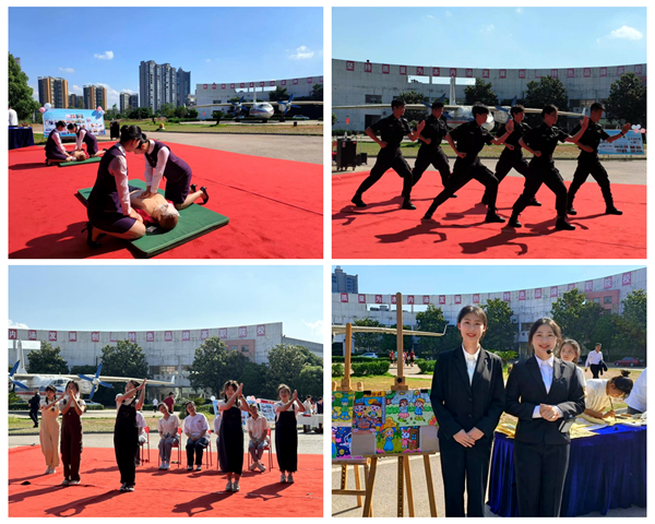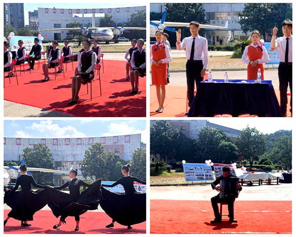 5月17日,在学校飞机坪前,由空中乘务、民航运输服务、民航安全技术管理、高速铁路客运服务、学前教育、音乐舞蹈表演等专业组成的学生代表,带来空乘礼仪秀、应急处置技能、心肺复苏及创伤包扎急救技能、擒敌技能、奥尔夫音乐、苗族舞蹈、手风琴独奏等各项技能展示,获得现场领导、老师及学生们的高度赞赏。