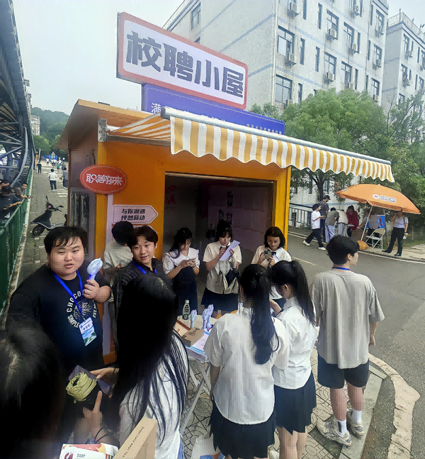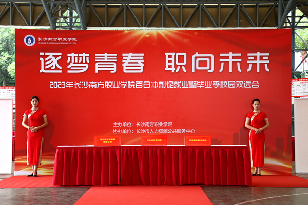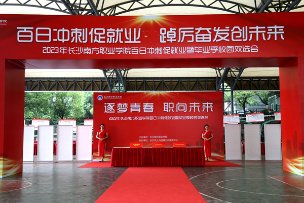 6月20日,我校联合长沙市人力资源和社会保障局在校篮球场举办“百日冲刺促就业暨毕业季校园双选会”。