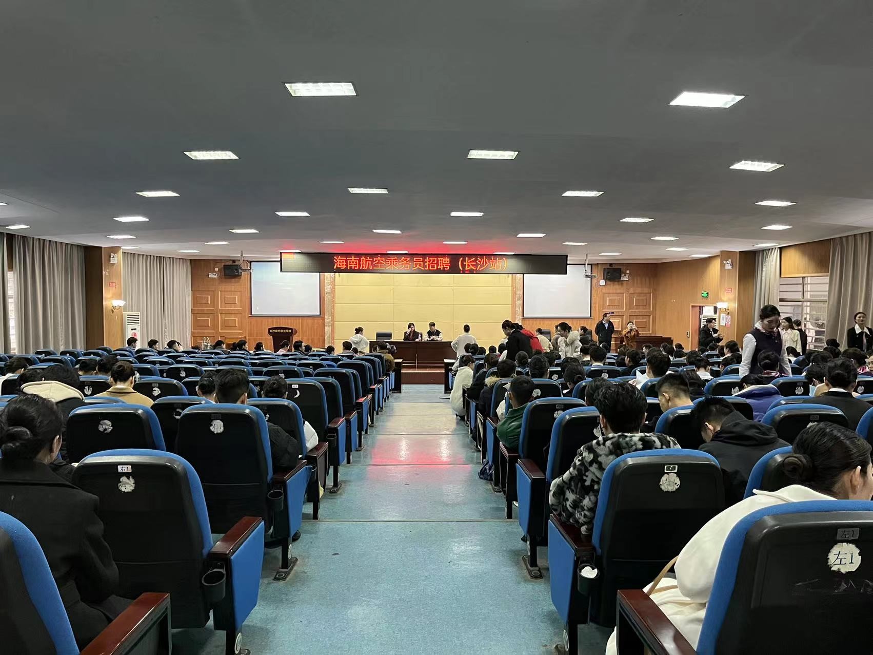2月28日-3月2日,海南航空在长沙南方职业学院学术报告厅召开了乘务员专场招聘会。我校民航学子怀揣着对未来职业发展的美好憧憬,精心准备,来自全国各地其他院校的优秀学子也来到招聘会现场,学术报告厅内座无虚席。