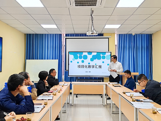 会上,系部李兵主任从专业师资、实训室、专业、课程、教学成果现状到教学改革思路及建议作了详细汇报,重点强调专业建设以技能竞赛为载体,合理设计专业课程,深化课赛融合、课证融通,岗课融合;项目化教学改革负责人陈将主任对软件技术专业建设发展路径、要素及如何实施项目化作了专题汇报。