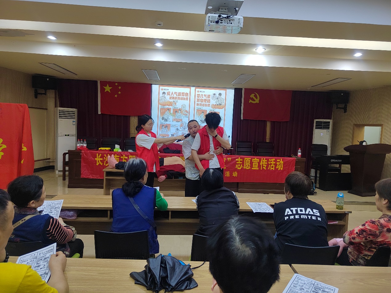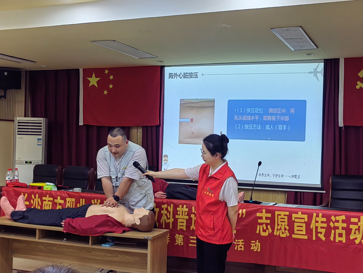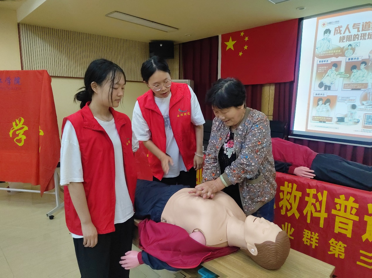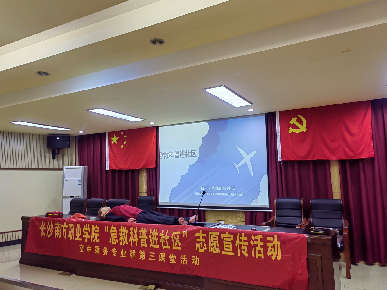 4月18日下午,长沙南方职业学院民航学院空中乘务专业群的“航十字”急救志愿服务队应湘江新区西湖街道龙王港社区居委会和龙王港美嘉居家养老服务站邀请,在龙王港社区服务中心开启了“急救科普进社区”系列活动,并建立了社会社会实践活动基地和志愿服务活动基地。