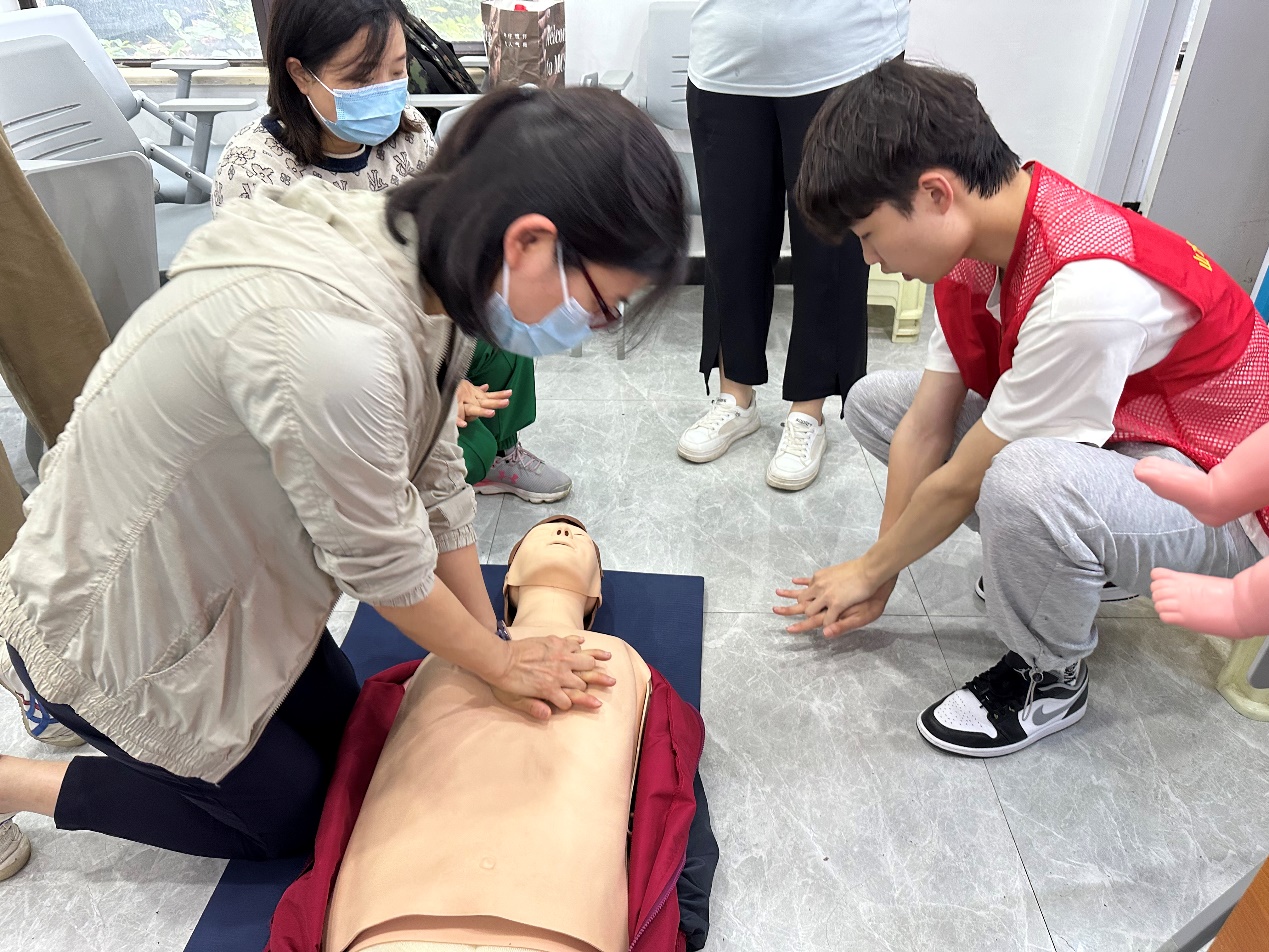 到场的社区居民参与热情非常高,团队学生们也积极地进行解惑和示范。在热火朝天的练习之余,现场不少居民表示,希望“航十字”急救志愿服务队能经常来社区开展类似的活动。