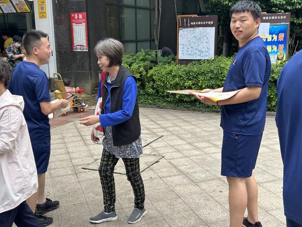 服务行动之二是高层建筑隐患排查,筑牢消防安全防线。在指导老师的带领下,消防安全志愿者们认真仔细地开展了小区楼栋的消防安全隐患排查工作。针对高层建筑用火用电消防安全管理情况、建筑消防设施运行情况、消防车通道、安全出口和疏散通道是否畅通,消防器材配备和维护情况、电线是否老化,用电用气是否符合规范等情况进行实地察看。排查完成后,志愿者将发现的问题进行汇总,向物业反馈,并建议物业增加消防基础设施、定期检查消防通道畅通情况、规范电动车停放。同时建议物业加强消防宣传培训,以防意外发生。