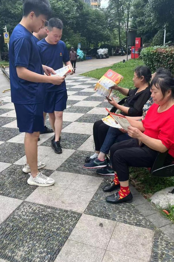 服务行动之一是消防宣传进小区,消防知识护万家。消防安全志愿者们扎实开展消防宣传进社区活动,通过在小区及周边商业街道居民发放宣传海报,面对面向群众宣传防火、灭火、逃生常识,重点针对老人、妇女等弱势群体进行讲解,全面普及家庭消防安全知识,引导他们正确用火用电,带动全民关注消防、学习消防、参与消防,真正把“关注消防、生命至上”的理念扎根于群众心中。