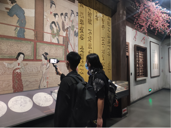 比赛的筹备过程中,梁诗琴老师与王晓琴老师带领学生积极沟通交流,从湖湘文化中选取带有鲜明湘楚文化特色的刺绣工艺“湘绣”作为比赛主题,指导学生从构思故事、撰写脚本入手确定拍摄方案,并积极联系博物馆、制定实地拍摄计划。于5月中旬带领信息工程系动漫制作技术专业2101班的参赛同学李嘉睿、刘洪扬、朱孝茏,前往湘绣博物馆进行实地取景拍摄。