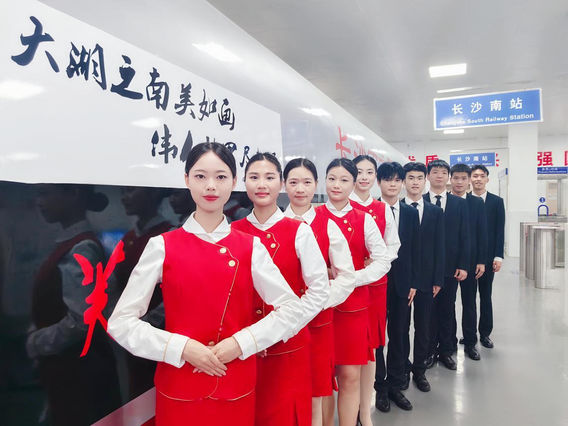 “欢迎您乘坐‘芙蓉号’旅游专列,畅享湖湘文化之旅”。6月20-21日,民航学院高铁乘务服务综合实训室《空铁旅游地理》课程实训成果展——“芙蓉号”专列展示现场人头攒动,“旅客”络绎不绝。成果展由2022级高速铁路客运服务专业10名学生组成的“芙蓉号”小组设计、筹备,以“大湖之南美如画,伟人故里尽朝晖”为主题。