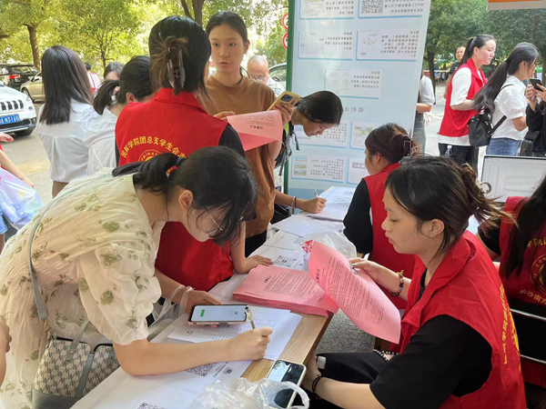 热情的为到校学生、家长解答问题