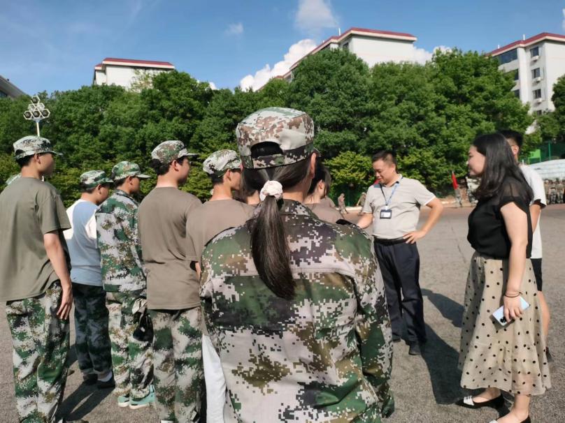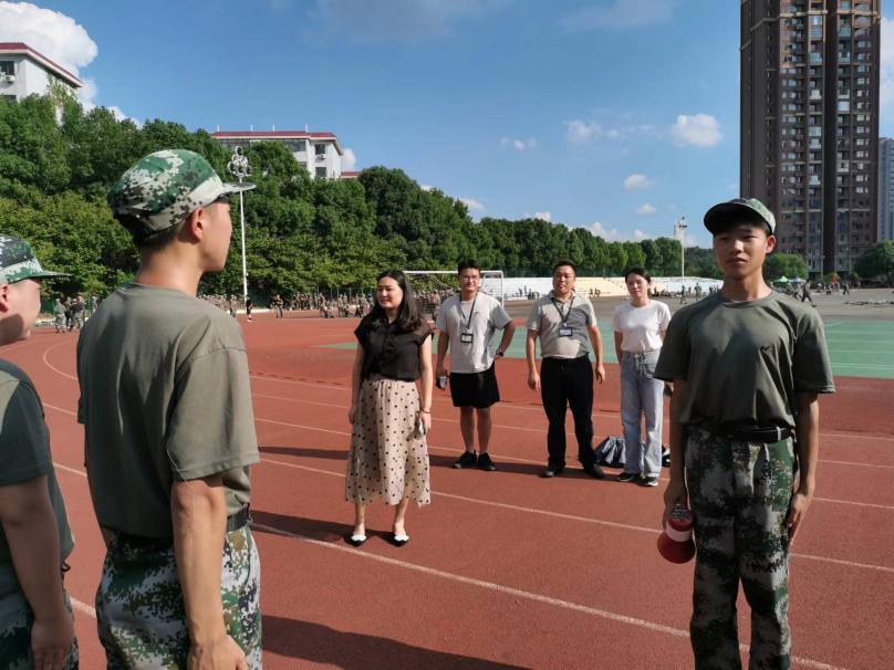 彭伟副主任详细了解新生的军训情况,对军训中受伤的同学关切慰问,叮嘱新生在训练中注意安全,强调要做到安全第一。