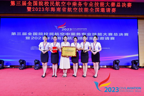 12月21日,第三届全国院校民航空中乘务专业技能大赛总决赛暨2023年海南省航空技能全国邀请赛在海南三亚闭幕。我校航空旅游学院参赛队伍获得本次大赛团体三等奖,此外,在闭幕式上,航空旅游学院参赛选手刘湘莲更是作为优秀选手进行考核科目展示。