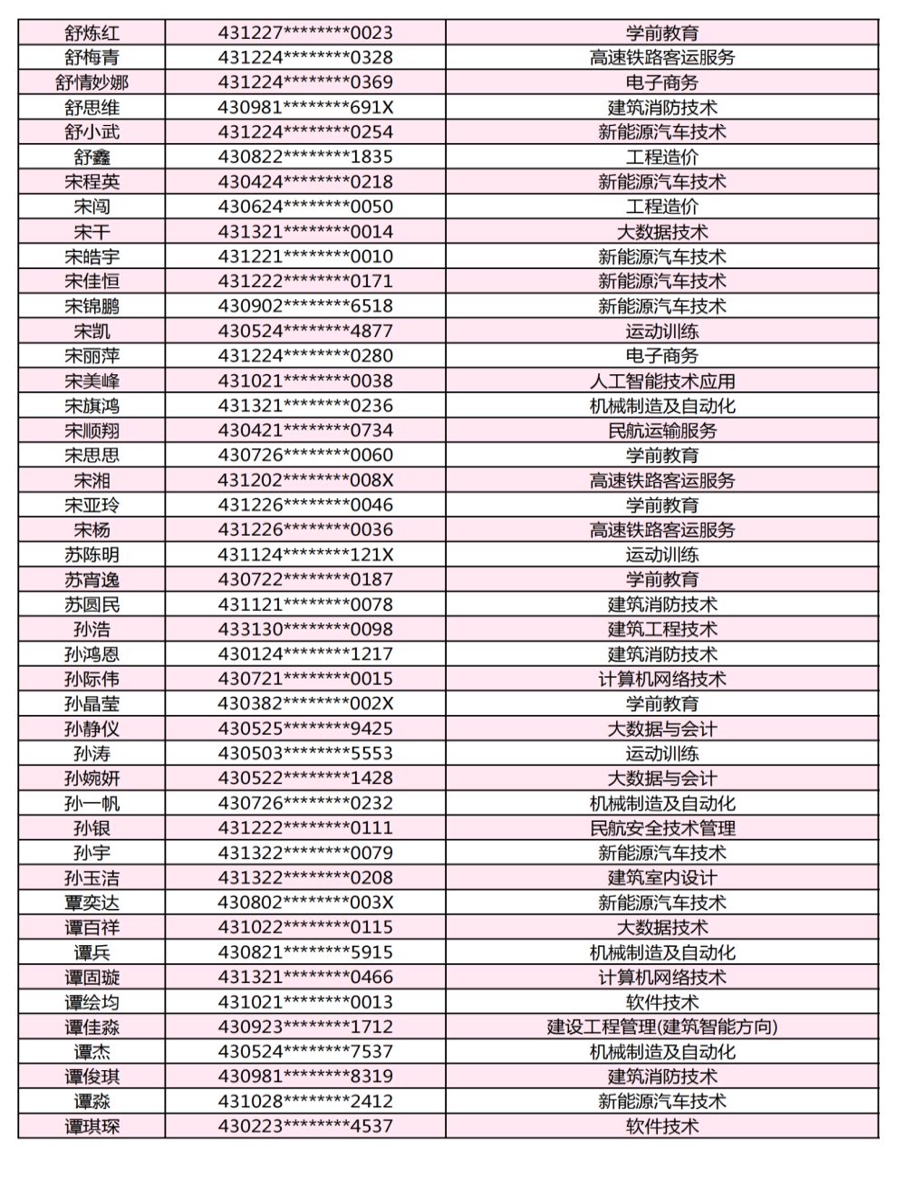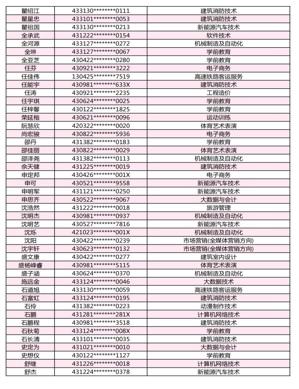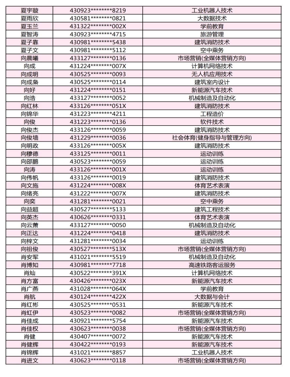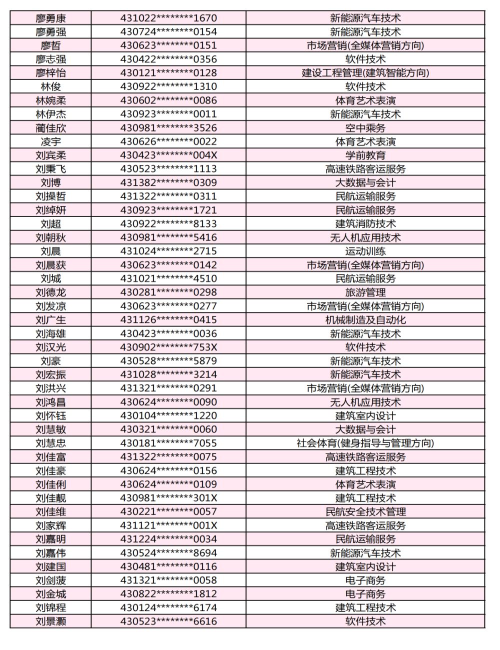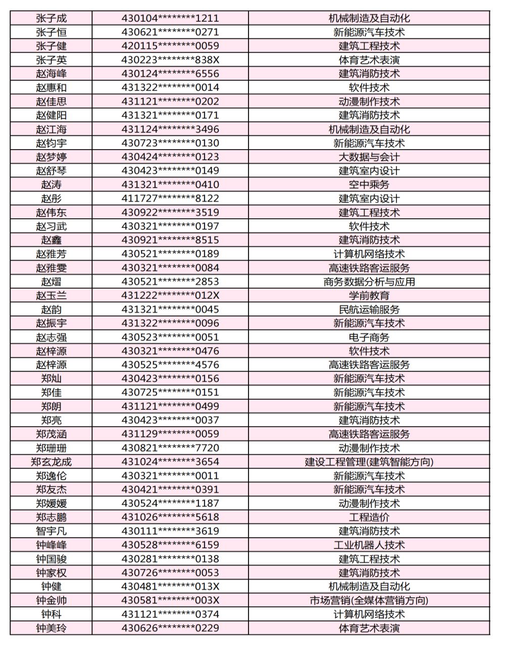 根据湖南省教育厅《关于做好湖南省2024年高职(高专)院校单独招生工作的通知》(湘教发〔2023〕49号)和湖南省教育考试院《关于做好2024年高职院校单独招生有关工作的通知》(湘教考通〔2024〕1号)及《长沙南方职业学院2024年单独招生章程》规定,现将我校2024年单独招生录取名单予以公示。公示期为2024年4月23日至2024年4月29日。已被我校单招录取的考生不能参加本年度统一高考和普通高校对口招生考试,不得转学、转专业。若对录取名单有异议,请在公示期内以书面形式向学校招生就业处反映。