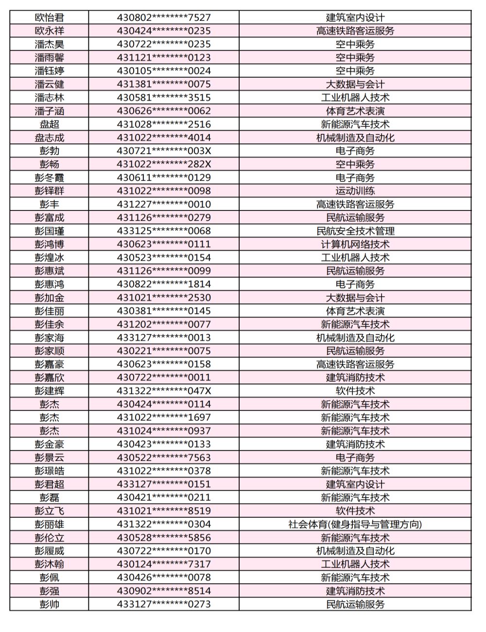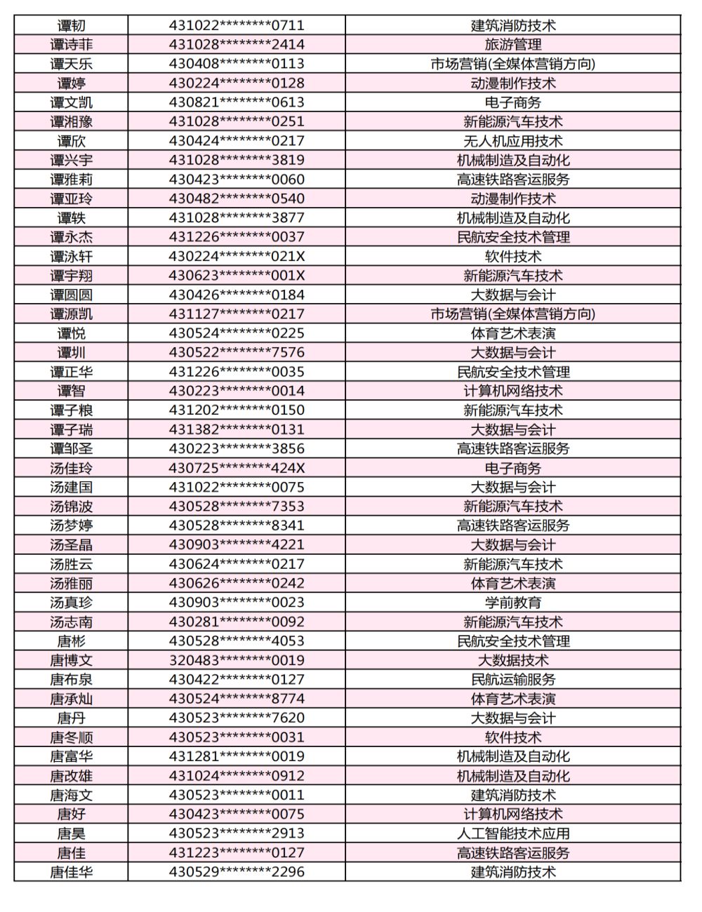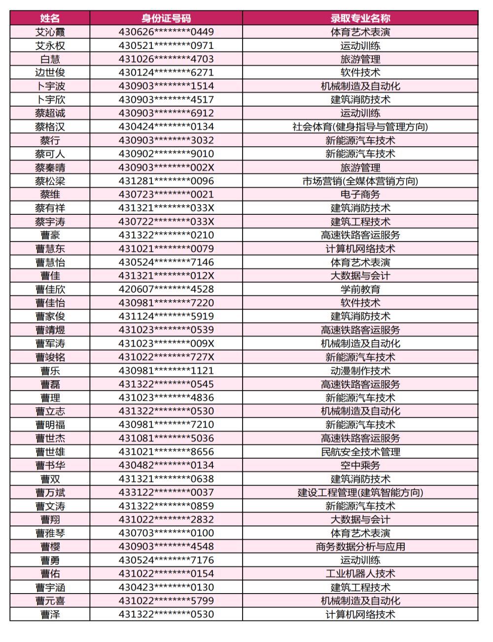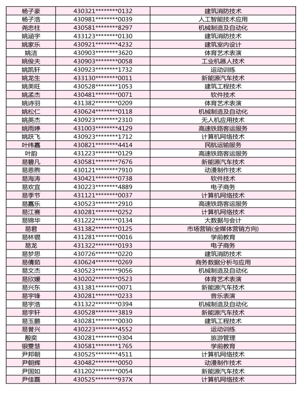 根据湖南省教育厅《关于做好湖南省2024年高职(高专)院校单独招生工作的通知》(湘教发〔2023〕49号)和湖南省教育考试院《关于做好2024年高职院校单独招生有关工作的通知》(湘教考通〔2024〕1号)及《长沙南方职业学院2024年单独招生章程》规定,现将我校2024年单独招生录取名单予以公示。公示期为2024年4月23日至2024年4月29日。已被我校单招录取的考生不能参加本年度统一高考和普通高校对口招生考试,不得转学、转专业。若对录取名单有异议,请在公示期内以书面形式向学校招生就业处反映。