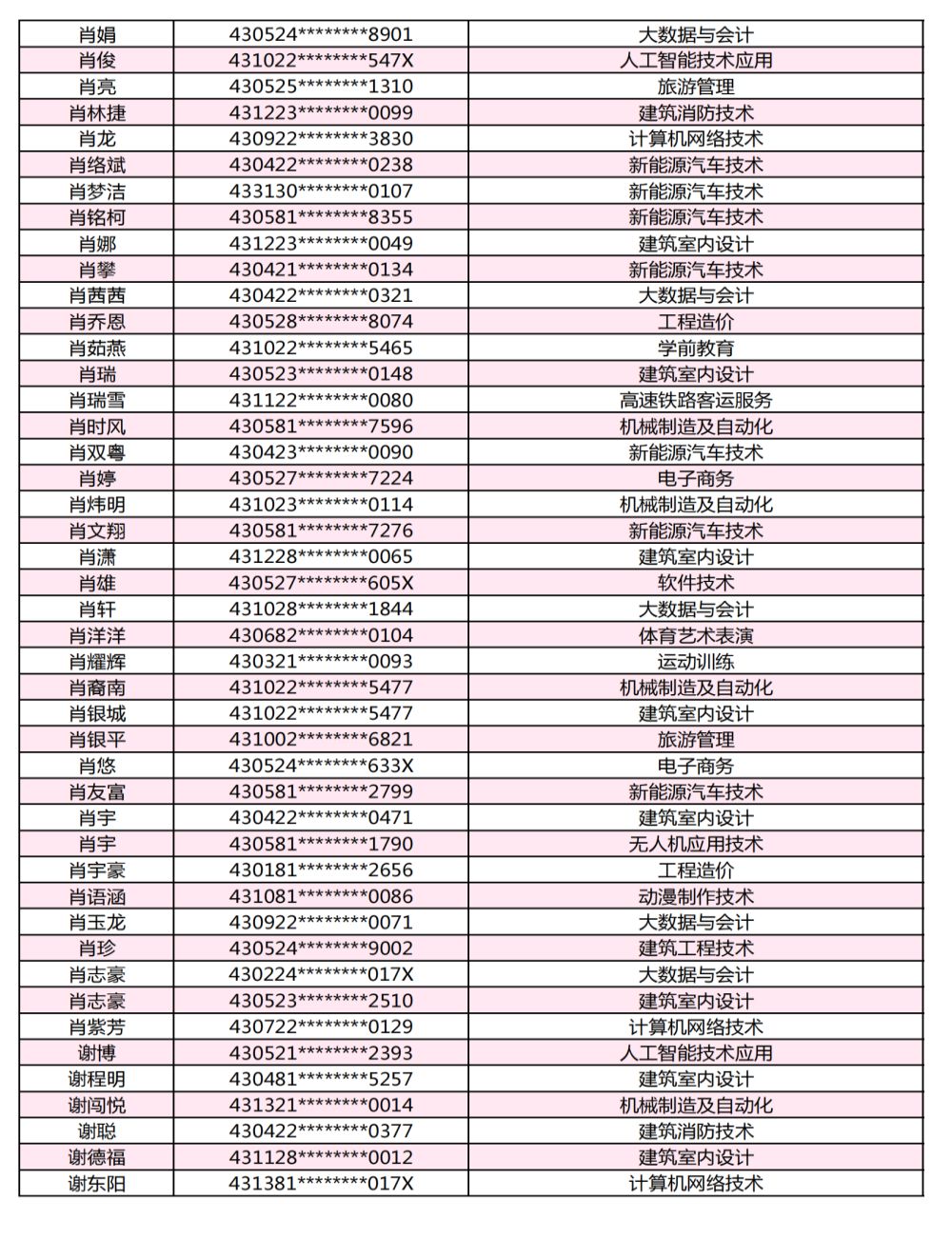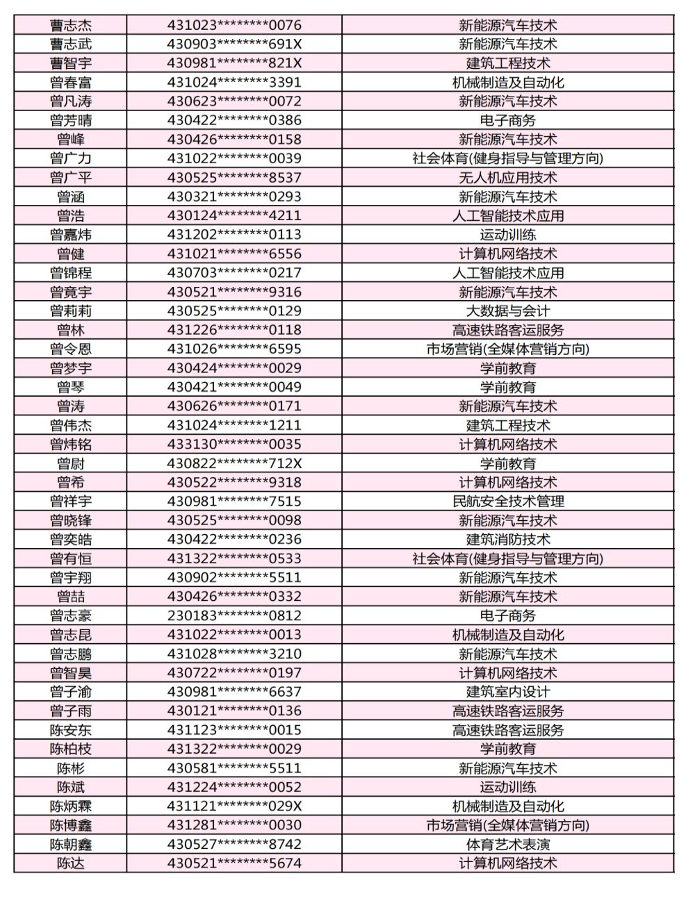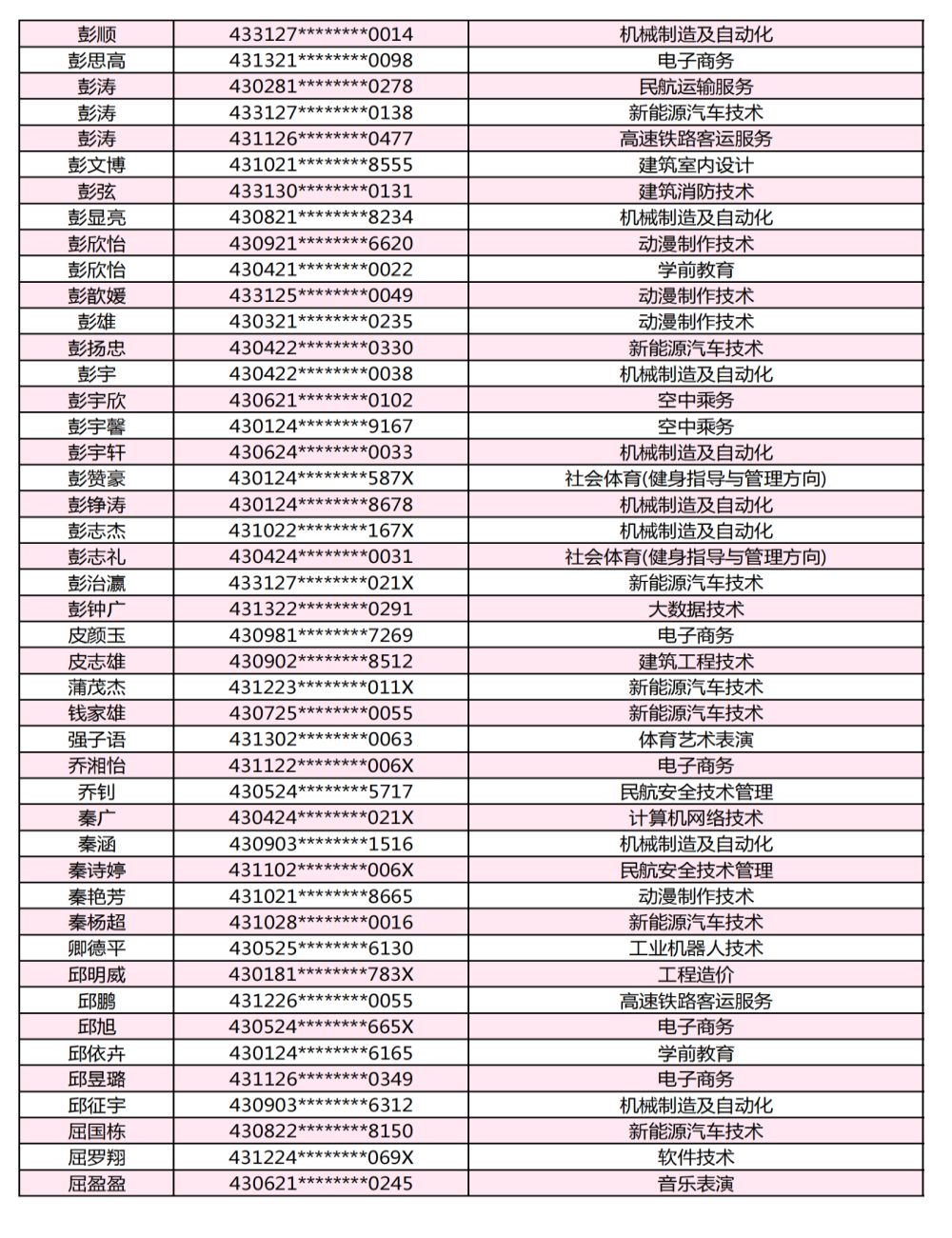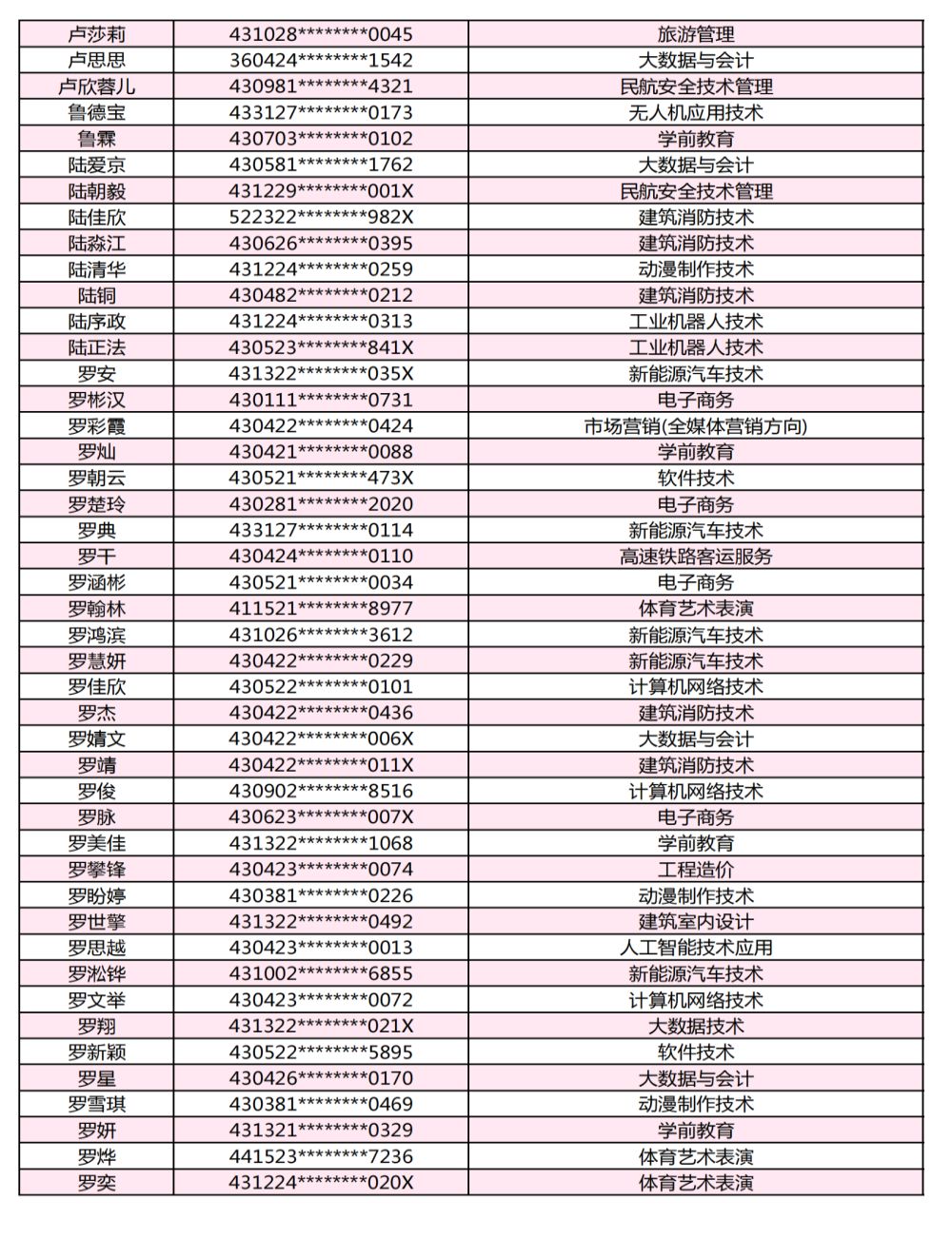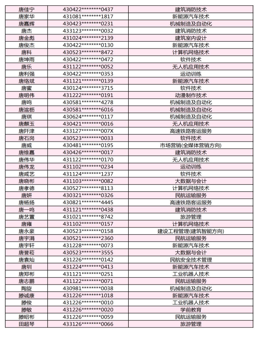 根据湖南省教育厅《关于做好湖南省2024年高职(高专)院校单独招生工作的通知》(湘教发〔2023〕49号)和湖南省教育考试院《关于做好2024年高职院校单独招生有关工作的通知》(湘教考通〔2024〕1号)及《长沙南方职业学院2024年单独招生章程》规定,现将我校2024年单独招生录取名单予以公示。公示期为2024年4月23日至2024年4月29日。已被我校单招录取的考生不能参加本年度统一高考和普通高校对口招生考试,不得转学、转专业。若对录取名单有异议,请在公示期内以书面形式向学校招生就业处反映。