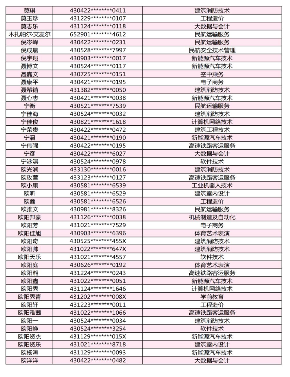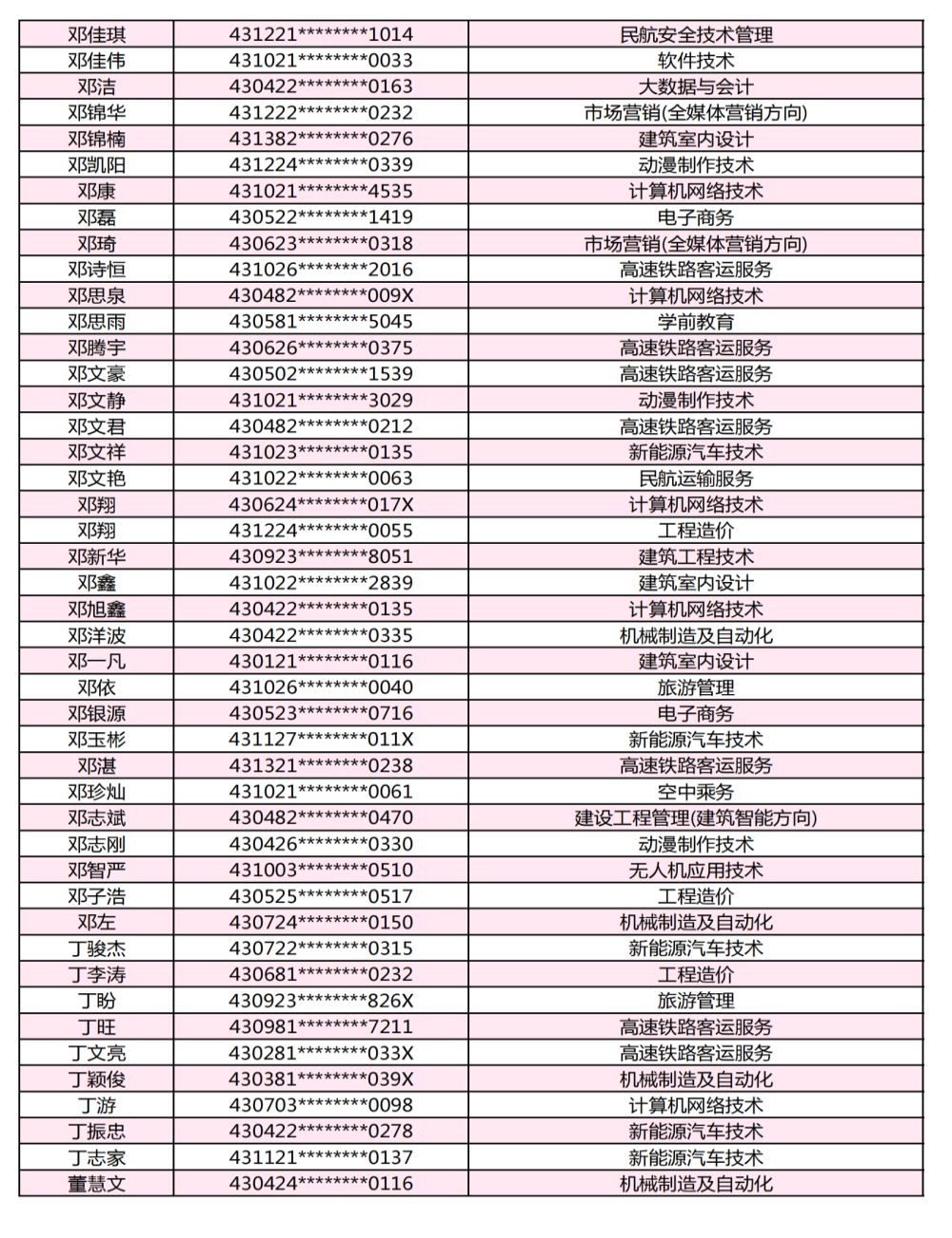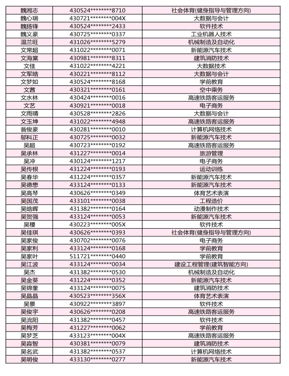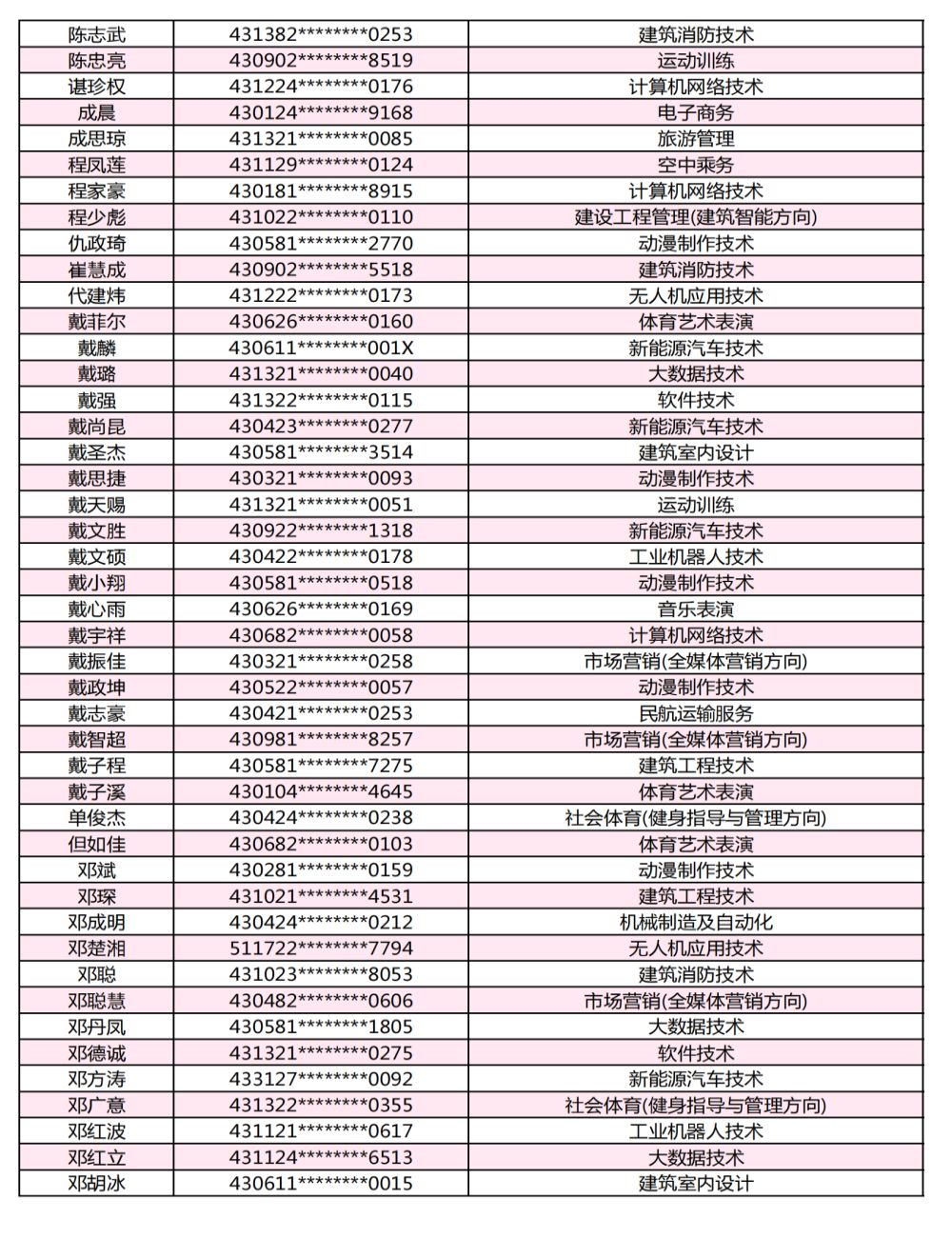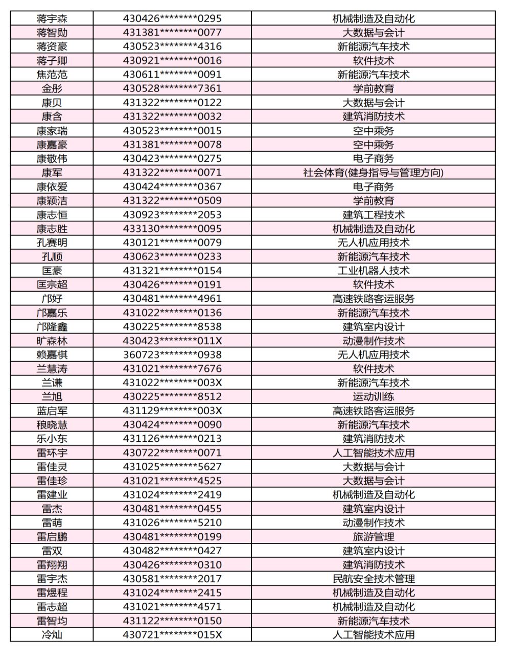 根据湖南省教育厅《关于做好湖南省2024年高职(高专)院校单独招生工作的通知》(湘教发〔2023〕49号)和湖南省教育考试院《关于做好2024年高职院校单独招生有关工作的通知》(湘教考通〔2024〕1号)及《长沙南方职业学院2024年单独招生章程》规定,现将我校2024年单独招生录取名单予以公示。公示期为2024年4月23日至2024年4月29日。已被我校单招录取的考生不能参加本年度统一高考和普通高校对口招生考试,不得转学、转专业。若对录取名单有异议,请在公示期内以书面形式向学校招生就业处反映。