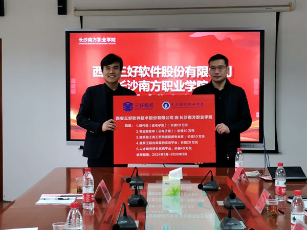 后续,三好股份向学校捐赠建筑工程仿真案例实训平台、课件库、专业图集库等,价值共计90万元。