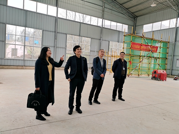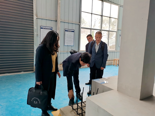 校企双方人员参观产教融合实训基地建筑工程教学实训中心