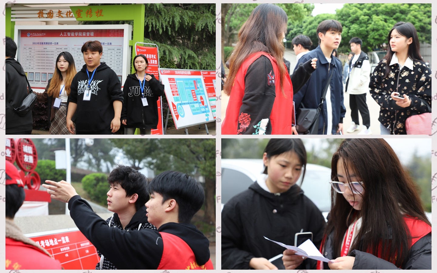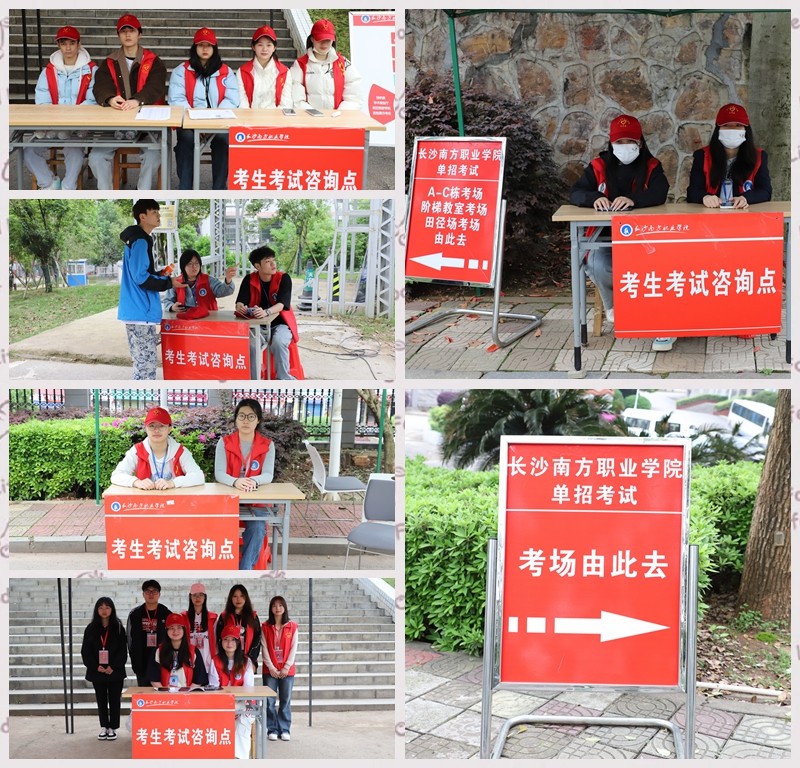 为了确保单招考试的顺利进行,学校在校门口、考试考点设立了“单招考生咨询点”、学校平面地图、考点指路牌以及各专业考点流程图。志愿者们全程坚守岗位,热血饱满,面带微笑地指引着寻求帮助的考生们。