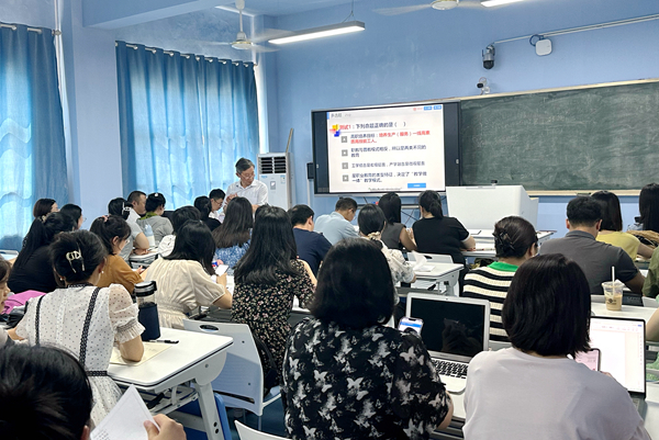 培训过程中,曾教授充分利用“雨课堂”智能教学工具,发布随堂小测试,实时评估培训效果。教师们积极参与,现场学习氛围浓厚,充分体现了教师们提升自身教学能力的强烈意愿。同时,通过即时反馈与交流增强了培训的实效性,也为教师们提供了相互学习、共同进步的平台。