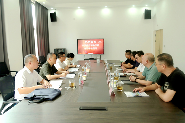 9月28日下午3:00,长沙南方职业学院党委书记赵小群、副校长肖建伟、党委办公室副主任严晓蕾、招生就业处副处长谭泽良一行四人赴新湘教育集团产教融合中心开展访企拓岗交流。
