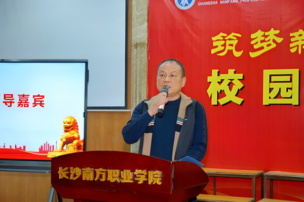 副校长肖建伟致辞。他指出,本次校园红歌合唱比赛是对伟大祖国生日的深情献礼;也是南职学子们在德育和美育方面的重要展现;更是学校坚持立德树人、三全育人、五育融合学生教育管理成果的生动体现。他希望同学们通过红歌这一独特的艺术形式,能够更好地铭记历史、缅怀先烈,进一步坚定理想信念,增强历史责任感和使命感,用青春的激情和奋斗,书写无愧于时代、无愧于人民的精彩篇章。