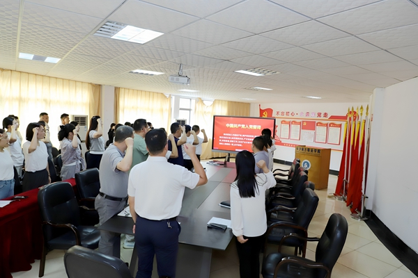 “我志愿加入中国共产党,拥护党的纲领,遵守党的章程...为共产主义奋斗终身,随时准备为党和人民牺牲一切,永不叛党”。全体师生党员整齐列队,面向党旗,庄严重温入党誓词。通过重温入党誓词,激励党员同志始终牢记入党初心,传承红色基因。