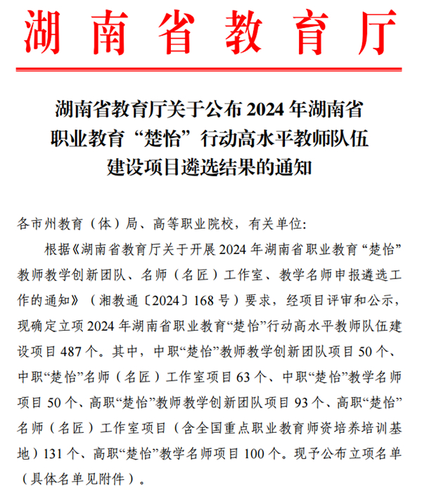 学校成功立项湖南省职业教育“楚怡”教师教学创新团队