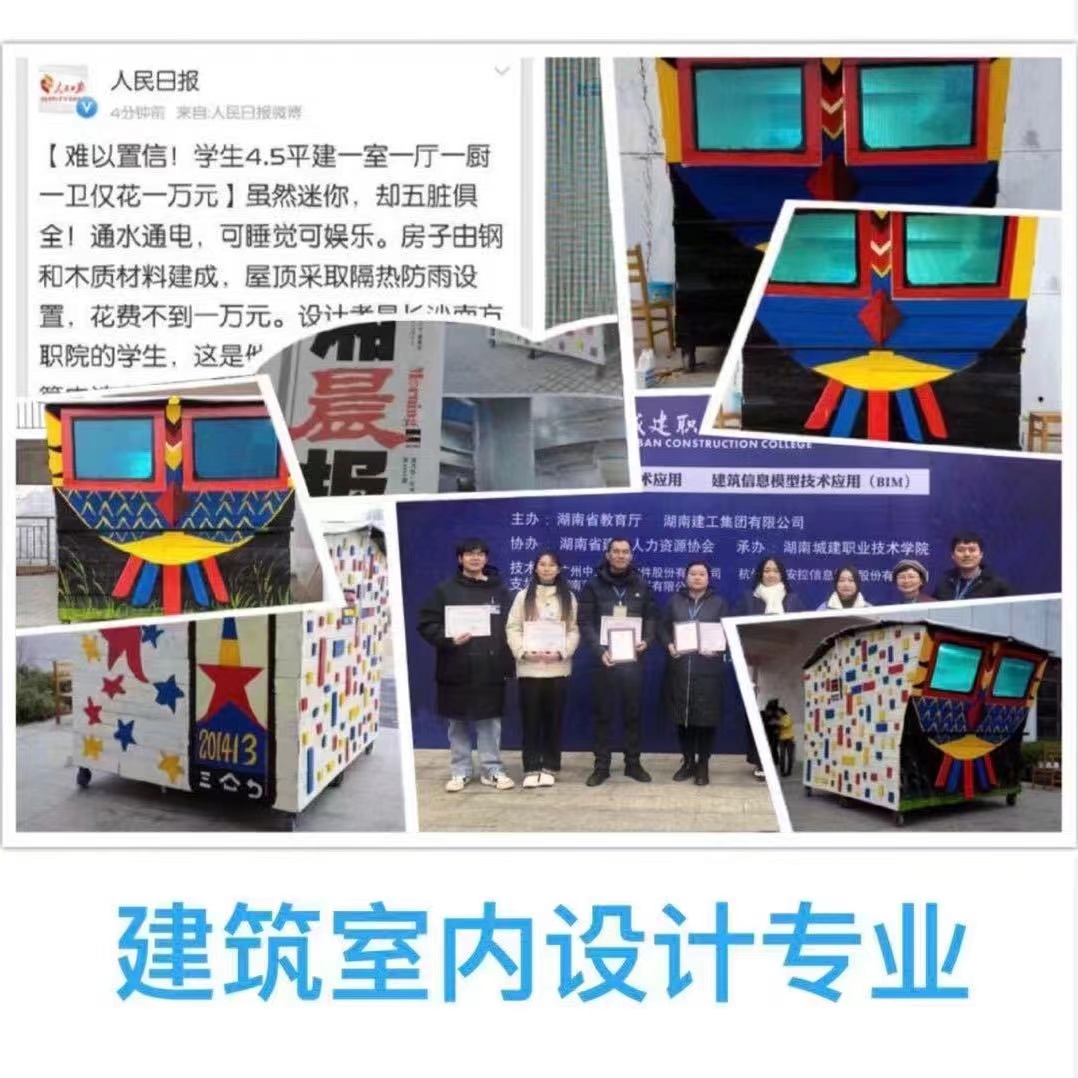 长沙南方职业学院建筑室内设计专业是湖南省王牌专业、湖南省第一家人才培养方案“优秀”专业、湖南省第一家人培和技能考标题库“双优”专业、“潇湘晨报”头版头条报道专业,专业始终推进“以学生为中心”的教法改革,搭建校企合作育人平台,构建公共基础课程体系和专业课程体系两个体系;打造高水平专任教师、兼职教师、辅导员三支队伍;着力培养学生的社会能力、方法能力、专业能力三种能力;用“牢记使命、课程思政全程化”“课程设置、项目模块‘装配化’”“因材施教、能力培养系统化”“突破难点、课程评价多元化”“校企合作、人才培养订单化”五大特色,贯彻落实“为党育人、为国育才”使命!