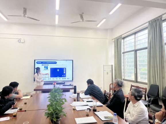 曾文妮介绍室内教研室教研教改情况。室内教研室主任曾文妮副教授从建筑室内设计专业(以下简称“室内专业”)专业概况、党建引领、教学改革、教研成果四个方面,对室内专业“党建+”的教研教改成果进行汇报,并针对室内专业在快速发展过程中出现的一些问题进行说明,表示全体教师将立行立改,以打造“金课”的态度上好每一堂课!