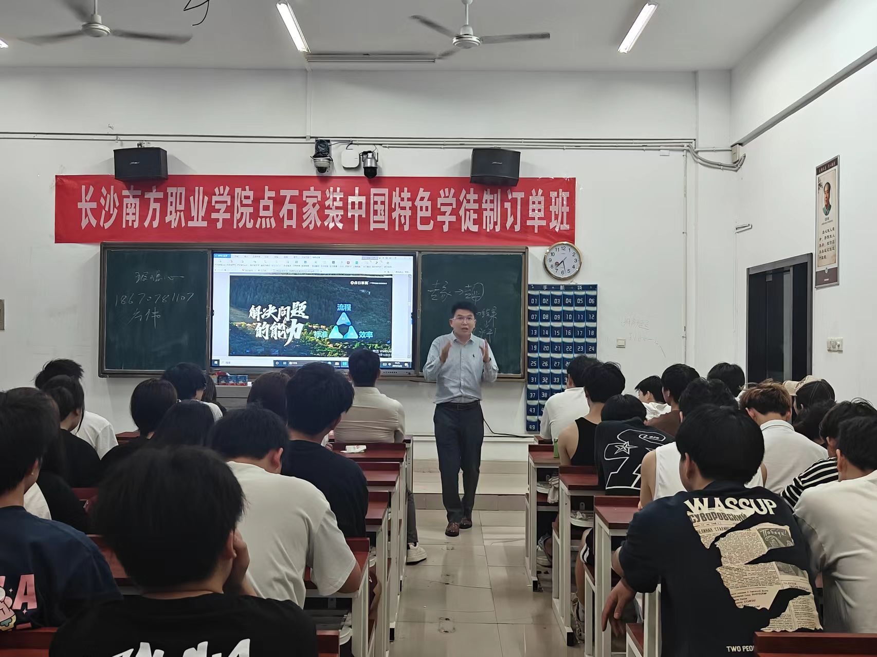 孙振以“你的人生目标是什么?”提问,围绕“如何成为一个专业的设计师?”“要成为一个怎样的设计师?”“如何成为一名优秀的设计师?”等话题,从设计服务、施工工艺、家装选材、木作定制、环保品质、交付验收、售后服务“7大高标准”“一体化家居解决方案”等内容展开授课,引发学生思考、交流,开启第一堂课。