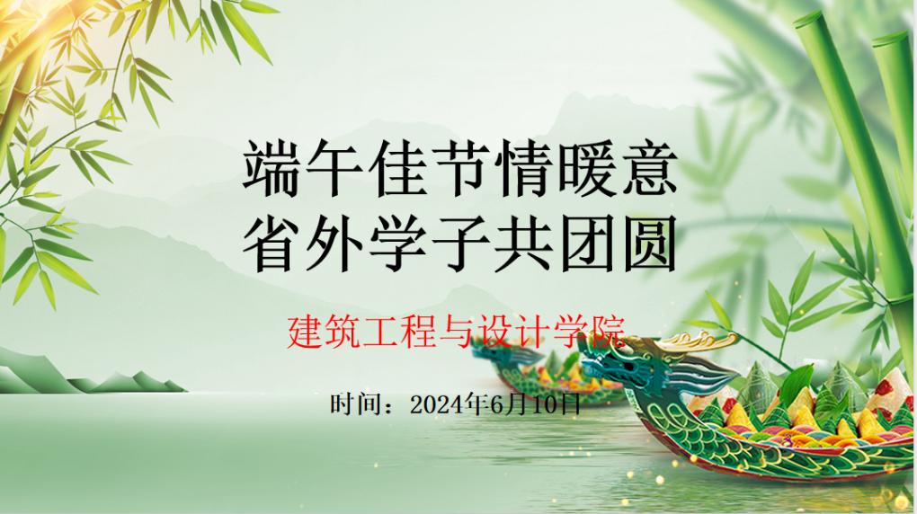 一年一端午,一岁一安康。2024年6月10日,建筑工程与设计学院(以下简称“”建筑学院”)在画室举办“”端午佳节情暖意,省外学子共团圆”茶话会。建筑学院院长项林、副院长彭伟、团总支书记张挺与9位留校的省外学生代表欢聚一堂,共度佳节。