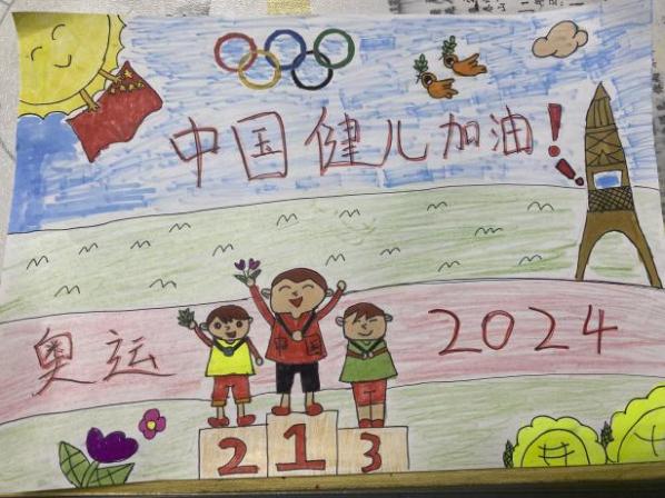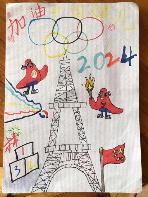 正值2024年巴黎奥运会火热开展之际,志愿者们以“传播奥林匹克精神 弘扬中国传统文化”为主题,组织孩子们手绘手抄报、竹笛吹奏等,讲中国故事,展中国形象,为远赴巴黎征战的中国奥运代表队加油助威!