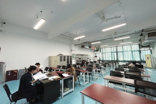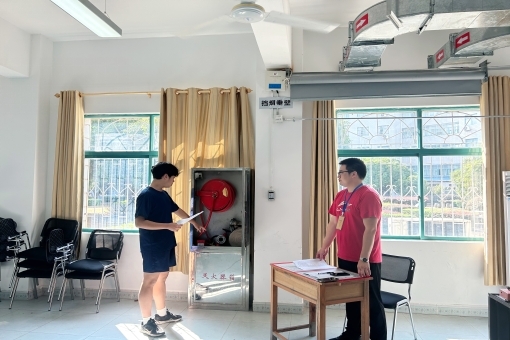 检录结束后,考生在考务组组长主持下逐一抽签,抽取模块及对应项目考题。技术专业分别有2名同学在多媒体教室B403、2名同学在多媒体教室B406、4名同学在建筑工程教学实训中心、2名同学在工程测量实训场、5名同学在环教412、4名同学在环教404进行考核;消防专业分别有3名同学在消防实训室405、4名同学在消防实训室406、3名同学在消防实训室407、3名同学在环教119室、3名同学在环教122进行考核。