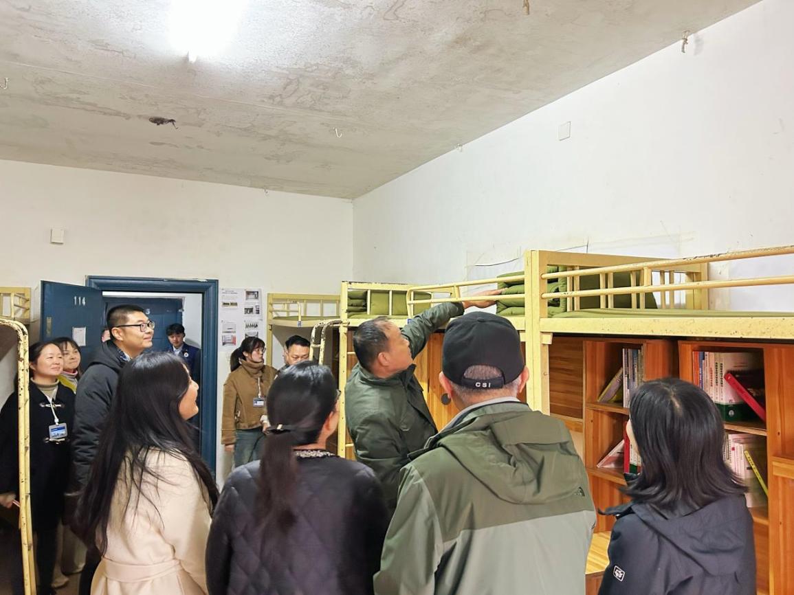 会后,学校、学院领导及各二级学院辅导员前往样板宿舍进行参观考察。肖建伟讲到,“一站式”学生社区建设是贯彻落实“时代新人铸魂工程”要求和立德树人根本任务的重要举措,通过样板宿舍建设,学生工作队伍下沉至宿舍,能更全面了解学生的思想、生活、学习等情况,及时帮助学生解决问题,将精准关怀与解决问题相融合、将思想政治教育与学生发展相融合,更好地促进学生全面成长。