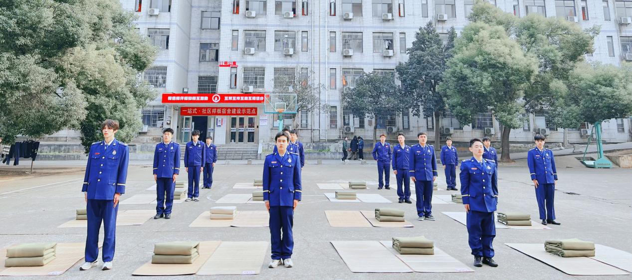参观考察结束后,消防专业内务比武活动在学校本部11栋前篮球场进行。比赛规则为在规定时间内,运用“叠、压、折、挤、捋、修”等操作技能,完成“棉被”到“豆腐块”的华丽转变。