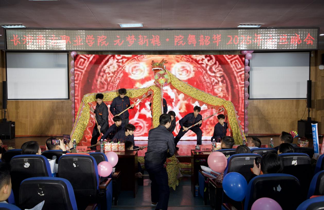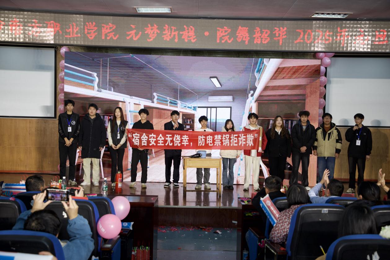 岁末之际,长沙南方职业学院(下称学校)校本部扬帆楼学术报告厅内华灯璀璨、欢声雷动,人工智能学院(下称人工学院)、数字商务学院(下称数商学院)、建筑工程与设计学院(下称建筑学院)携手共创的元旦晚会——“元梦新程,院舞韶华”震撼上演,副标题“三院携手跨旧岁·齐心奋进谱新篇”醒目高悬,宛如一面奋进的旗帜,引领三院师生挥别旧年、迈向新程,在校园中掀起一场青春与才艺碰撞的狂欢热潮。学校副校长肖建伟、学生工作处处长钟迎春、招生就业处处长张伟、人工学院院长李兵、数商学院院长何广军、建筑院长项林以及各二级学院副院长、团总支书记出席晚会。