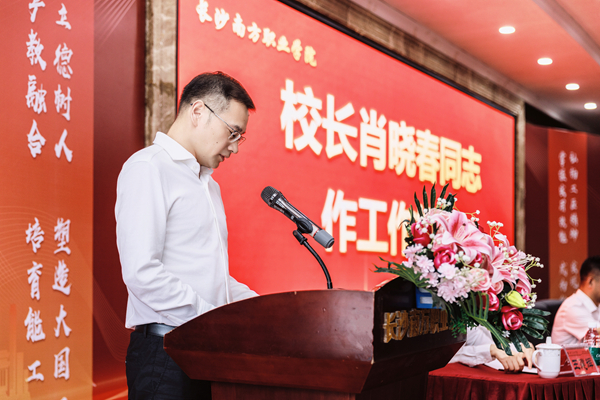 彭军湘代表湖南中协教育管理集团、湖南汇通实业发展有限公司及长沙轨道交通职业学院向全体南职教职工致以节日问候与祝贺。他表示:新的机制激发新活力,多措并举协力推进学校平稳过渡,铸就南职发展新路径。新机遇伴随新挑战,通过借力整改契机,实现南职办学提质蜕变。新团队承载新使命,学校要对标督导整改,抢抓发展机遇;着力优化治理结构,提升运行效能,聚焦提质培优,优化师资、美化校园环境。深化资源共享,打造特色典范,坚定不移将南方职院建成特色鲜明的职业本科大学。新要求呼唤新作为,广大南职人要继续弘扬教育家精神,努力打造一支有信念、有担当、有水平、有凝聚力和战斗力的精锐之师,始终牢记习近平总书记嘱托,秉承自强不息的精神,践行学以致用理念,将南职建设成为湖南职业教育的一张闪亮名片,以教育家精神引领南职迈向职业本科新征程!