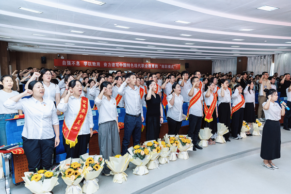 赵小群号召全体“南职人”不负“人民教师”光荣称号,肩负强国强校神圣责任,将教育家精神作为自觉追求,牢记为党育人、为国育才初心使命,以培育具备“经世致用”“心忧天下”湖湘精神的高素质技术技能型人才为目标,勇做燃灯者、争为引路人。以“教育家精神”为引领,争做塑造学生品格、品行、品味的“大先生”!为奋力谱写中国式现代化湖南篇章贡献更为坚实的南职理论和南职模式。