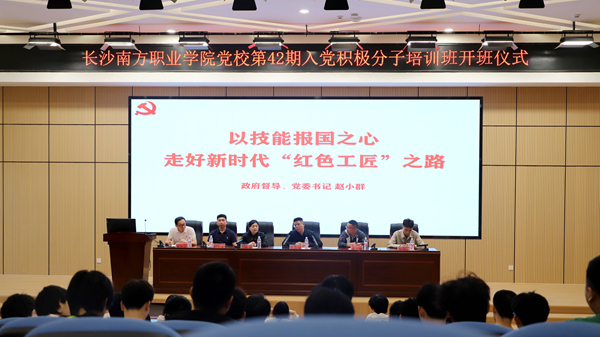 为深入学习贯彻党的二十大精神,切实加强党员队伍建设,提高入党积极分子的政治素养和理论水平。4月16日,长沙南方职业学院党校第42期入党积极分子培训班开班典礼分别在校本部和方舟校区学术报告厅举行。政府督导、校党委书记赵小群出席,各党总支书记、副书记,指导老师及党校第42期入党积极分子参加。开班典礼由党委办公室(宣传部)严晓蕾老师主持。