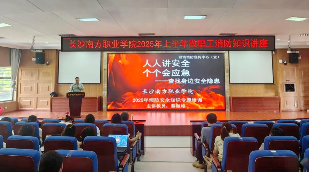 为深入推进第17个全国防灾减灾日活动开展,进一步增强教职员工防灾减灾意识,提升应急避险和自救互救能力,筑牢学校防灾减灾安全防线,5月13日下午,学???025年上半年教职工消防安全知识培训和灭火演练,本次培训特邀长沙市君消消防宣传中心蔡继雄教官来校授课,全校教职工及校内相关经营单位职工参加。