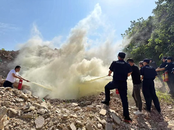 讲座后,保卫处组织教职工模拟火源场景进行消防灭火实践演练。参演教职工严格按照操作规程,提起灭火器、拔掉保险销,对准火焰根部左右喷射,迅速扑灭“明火”,整个过程紧张有序,达到预期演练效果。
