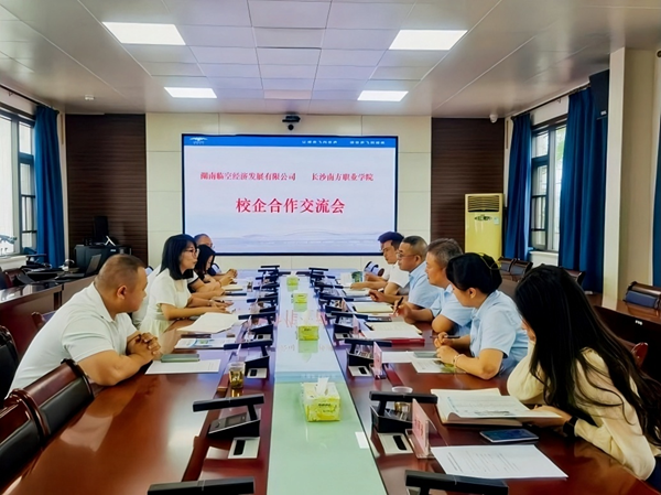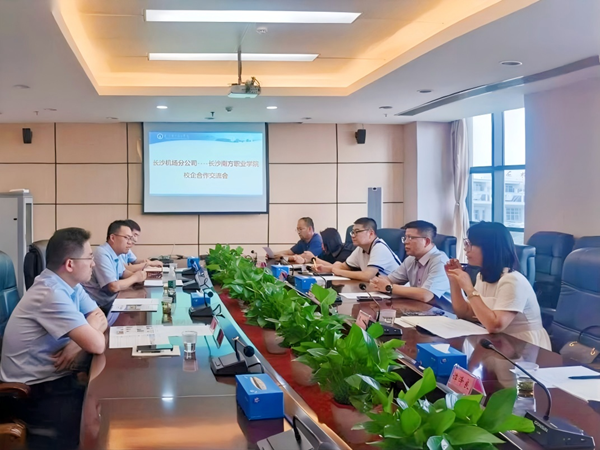 湖南临空经济发展有限公司党委委员、副总经理刘亚洲对长沙南方职业学院一行的到来表示热烈欢迎,培训事业部部长虢建辉详细介绍公司发展历程、职业能力培训等情况。校企在联合开展职业技能培训、开发课程体系、完善人才共育机制等方面达成多项共识,认为此类合作可推动职业教育人才培养与行业标准精准衔接,切实提升学生就业竞争力。
