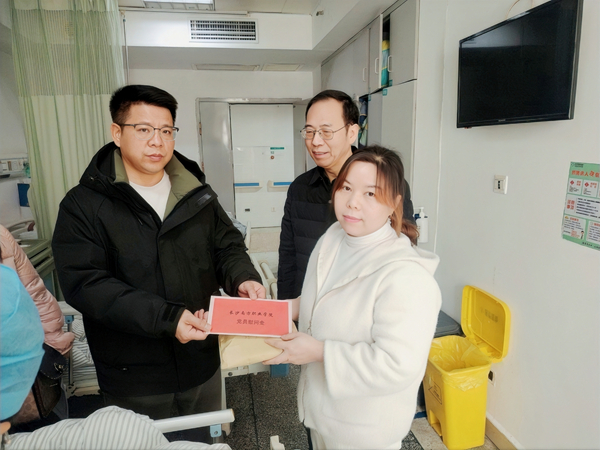 2025年1月3日上午,政府督导、校党委书记赵小群,基础教学部主任彭栋梁、校工会办公室主任严晓蕾及教师代表刘翔前往医院,代表学校及全体爱心师生将善款悉数交至其家人手中,向他们送去学校的温暖与党组织的关心和慰问,并叮嘱他们要注意身体。