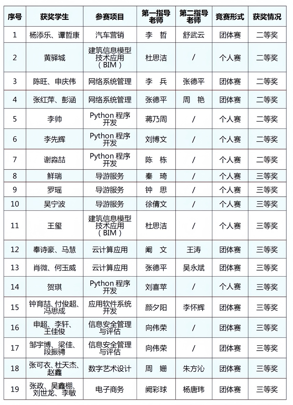 “楚怡杯”湖南省职业院校技能竞赛是湖南省职业教育领域备受关注且最具影响力的赛事。该赛事由湖南省教育厅与湖南省人力资源和社会保障厅联合主办,今年的比赛在对接世界大赛赛项设置同时,融入了湖南职教特色。本次竞赛中,我校在汽车营销、建筑信息模型技术应用(BIM)、网络系统管理及Python程序开发等多个赛项中表现突出。这优异的成绩凝聚了师生团队的辛勤付出,充分展示了学生的专业水平和全面的综合素质。