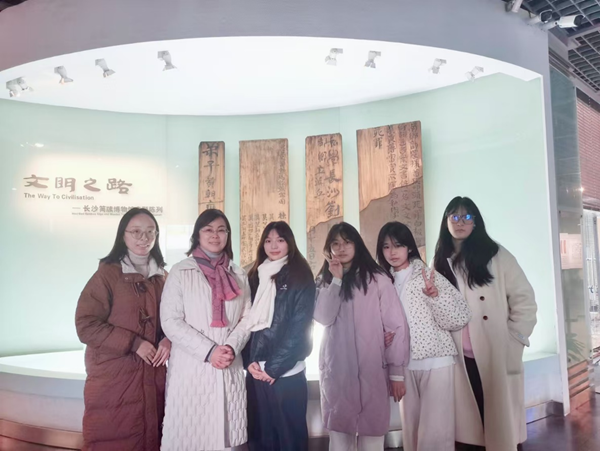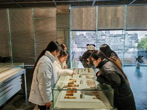 踏入长沙简牍博物馆,仿若踏入历史回廊。讲解老师以专业手势引导,带领同学们依文物陈列顺序将华夏历史娓娓道来,让沉睡千年的简牍“开口说话”,使古老文化重焕生机。从古代简牍制作工艺,到一枚枚简牍承载的政务、民生万象,同学们认真聆听老师的专业讲解,一边学习专业讲解老师的讲解技巧,一边悉心钻研自己感兴趣的历史知识并转化为通俗讲解词。