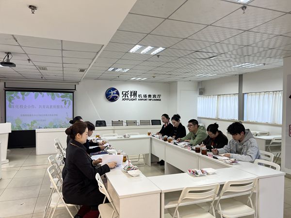 在贵宾服务部经理汪慧的带领下,龚鹏副院长一行参观了长沙黄花机场乐翔商务贵宾厅,了解企业的现场环境、组织架构、工作内容及业务范围。在座谈会上,校企双方就建立实训基地、企业订单班、校企师资共享以及联合开展研学活动等合作项目深入交流意见。同时也针对课程共建、产学研融合、师资认定、工作待遇、晋升渠道等方面与企业展开探讨。