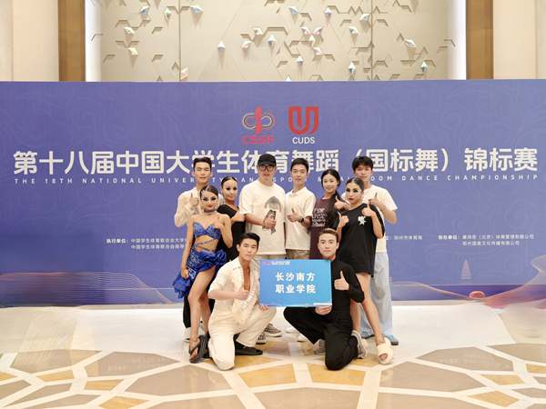 6月8日至12日,由中国学生体育联合会主办,郑州市体育局承办的第十八届中国大学生体育舞蹈(国标舞)锦标赛在河南郑州举行。作为全国大学生体育舞蹈领域的顶级赛事,赛事吸引了来自全国各地176所高校的1700余名运动员同场竞技。长沙南方职业学院代表队首次参赛并获2金1银3铜及“体育道德风尚运动队”佳绩。